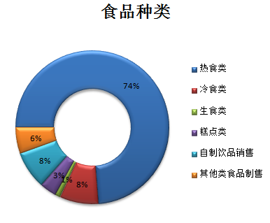 按食品种类划分,热食类食品制品163496家,冷食类食品制品17929家,生食类食品制品2664家,糕点类食品制品7728家,自制饮品销售17679家,其他类食品制售12201家。